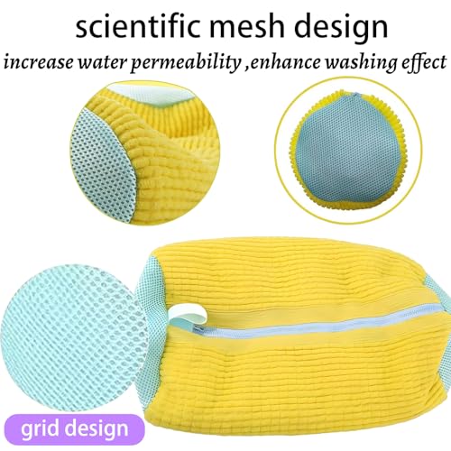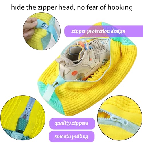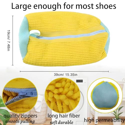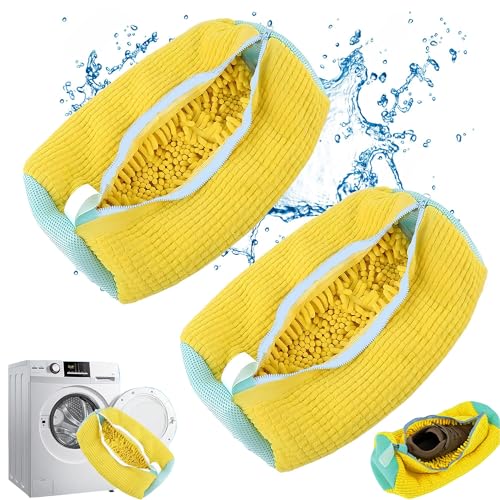 Hynhsun - كيس غسيل أحذية للغسالة، كيس غسيل أحذية قابل لإعادة الاستخدام لجميع أنواع الأحذية وأحجامها، كيس غسيل أحذية قابلة للتعديل، كيس غسيل أحذية رياضية بزاوية 360 درجة من هاينسون، لون أصفر، عبوة من قطعتين