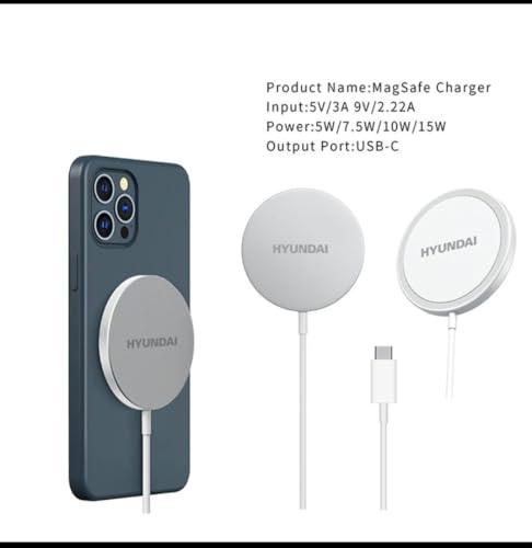 Hyundai - شاحن لاسلكي بمنفذ USB نوع سي بقدرة 15 وان من هيونداي HD-W01، أبيض
