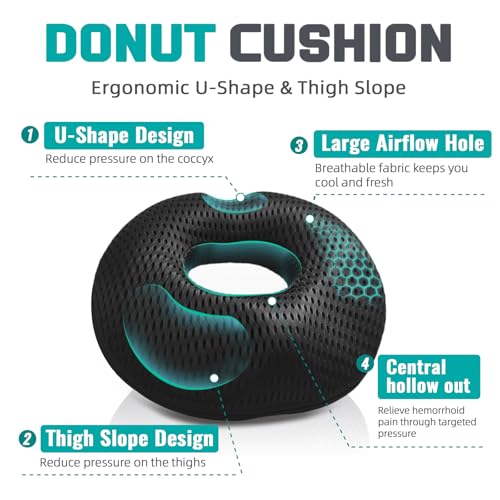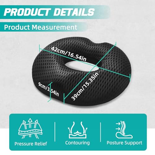 - تصميم مريح مزدوج على شكل حرف U: تتميز وسادة الدونات هذه بفتحة مركزية كبيرة مجوفة تتجنب الاتصال المباشر بالمناطق الحساسة، مما يقلل الضغط على البواسير وعظم الذنب مع تعزيز تدفق الهواء والراحة أثناء الجلوس لفترات طويلة.