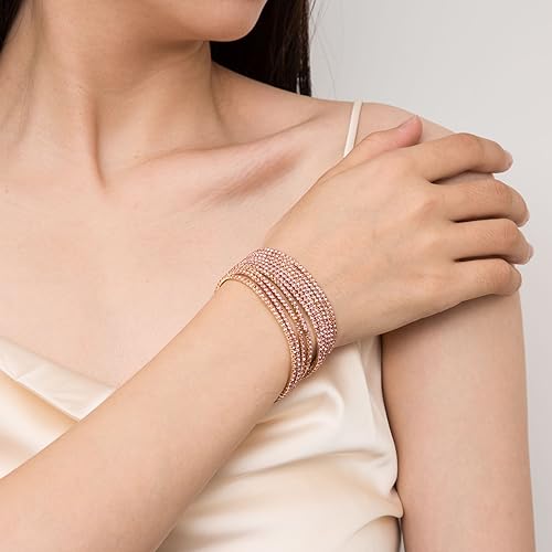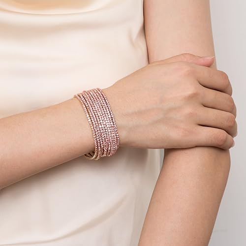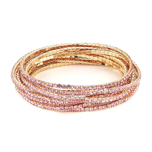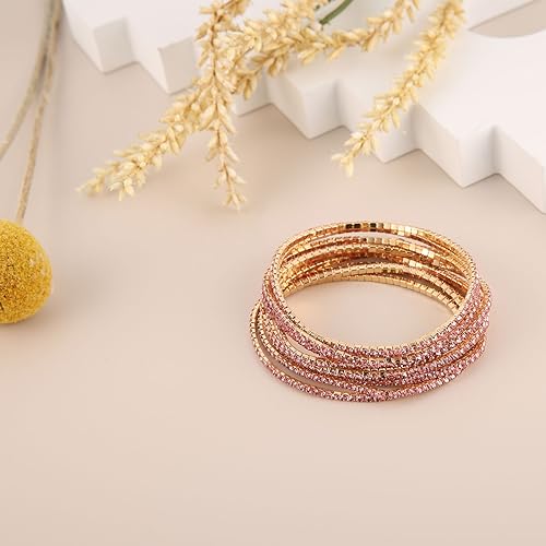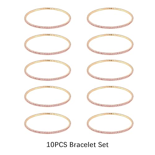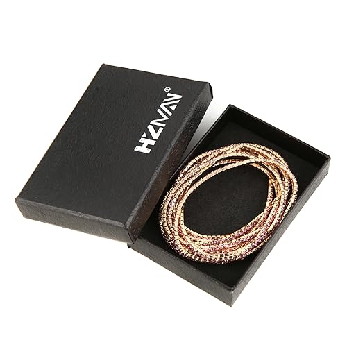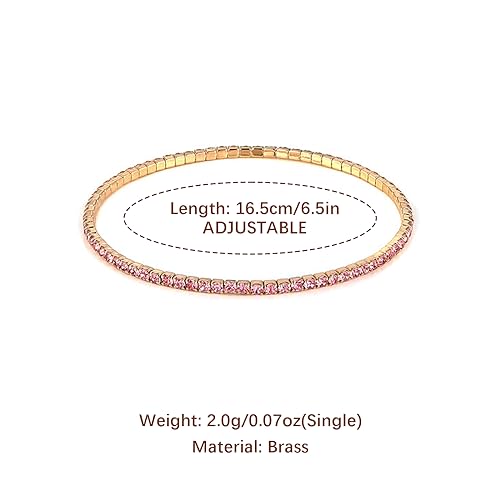 HZMAN - هزمان مجموعة اساور تنس للنساء والبنات مطلية بالذهب عيار 14 قيراط مرصعة باحجار زركونيا مكعب انيقة قابلة للتعديل والتكديس هدية مجوهرات لحفلات الزفاف بينك 6.5 انش نحاس