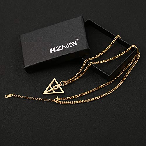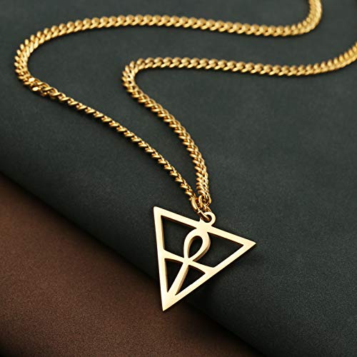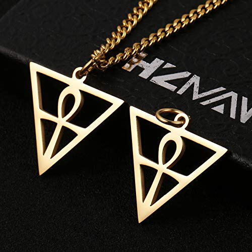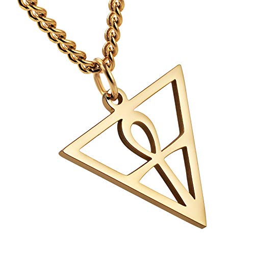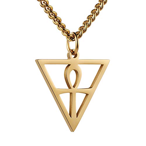 HZMAN - هزمان قلادة صليب قبطية عنخ للرجال والنساء بتصميم هرمي مصقول من الستانلس ستيل، مجوهرات مصرية بطول 22+2 انش، معدن، غير