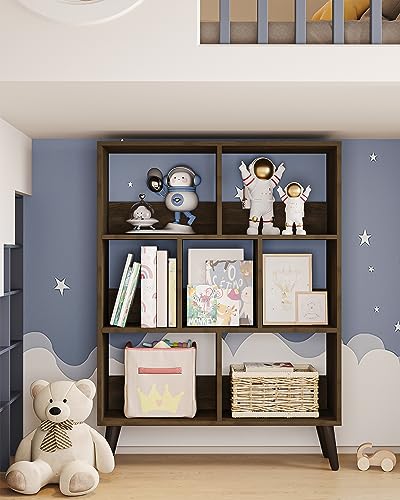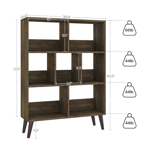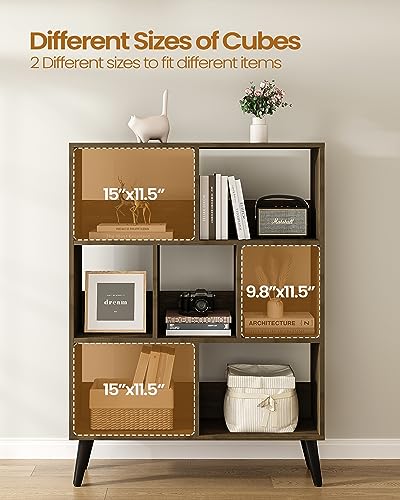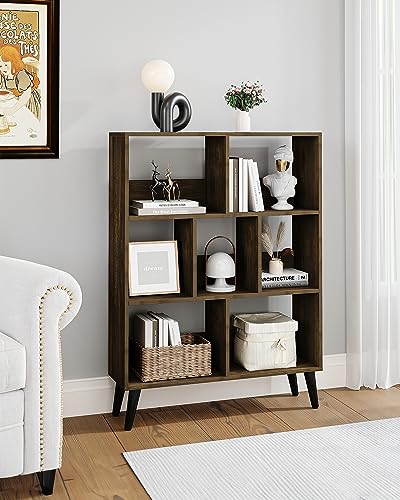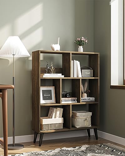 Hzuaneri - خزانة كتب خشبية من 4 طبقات من هزوانيري، 7 مكعبات، خزانة كتب كلاسيكية بنمط منتصف القرن مع ارجل خشبية صلبة، رف كتب قائم بذاته للمنزل والمكتب وغرفة المعيشة، بني BC07708X