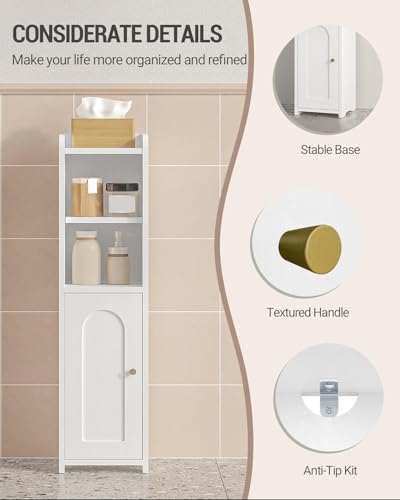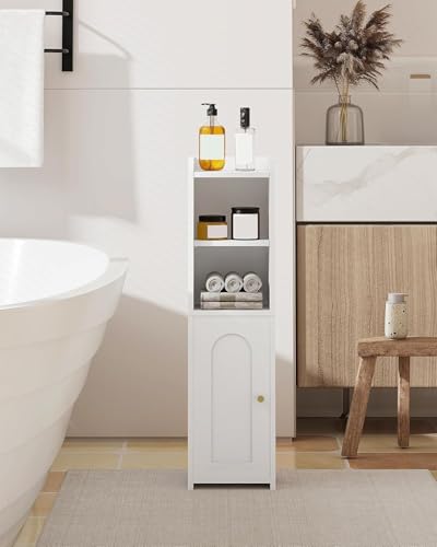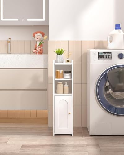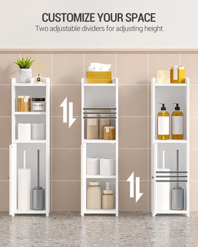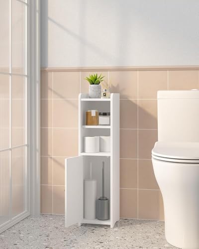 Hzuaneri - خزانة تخزين للحمام من هزوانيري، خزانة ارضية زاوية مع ابواب ورف قابل للتعديل، خزائن ضيقة لورق المرحاض، منظم حمام للمساحات الصغيرة، ابيض BC19703X