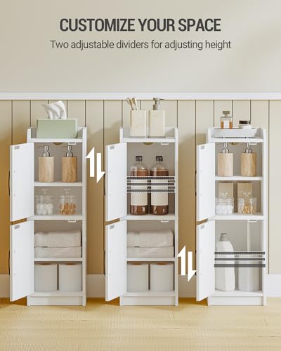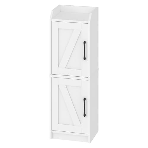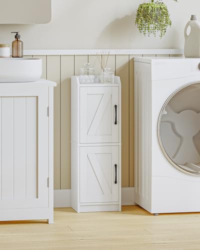 Hzuaneri - خزانة تخزين للحمام من هزوانيري، خزانة ارضية صغيرة لمنزل المزرعة مع باب وارفف، حامل ورق تواليت ضيق، منظم حمام مع رف قابل للتعديل، للمساحات الصغيرة، ابيض