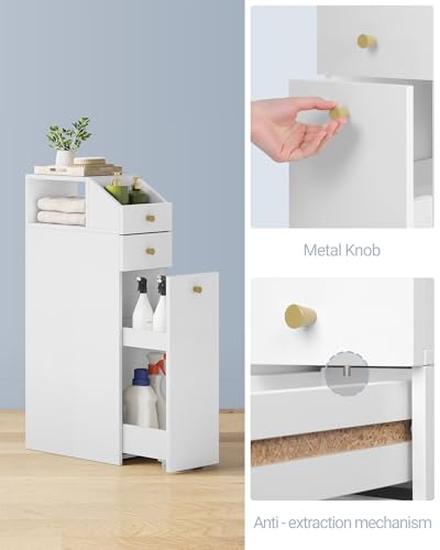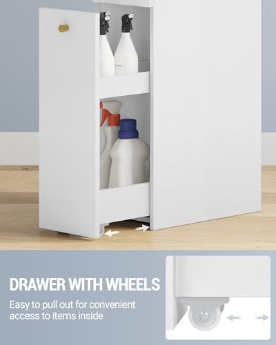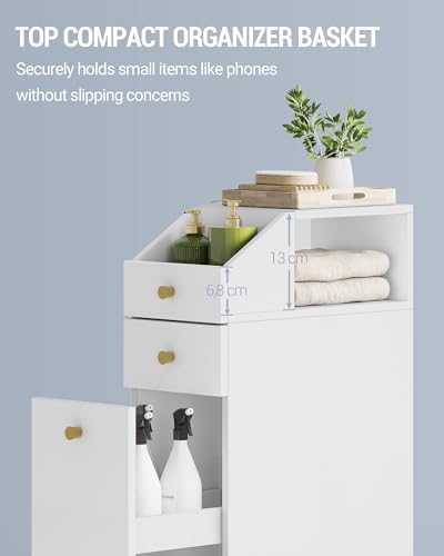 - قوية ومستقرة: خزانة الحمام الضيقة هذه مصنوعة من لوح خشب مضغوط عالي الجودة، وهي مقاومة للخدش وسهلة التنظيف. يتميز الدرج العلوي الصغير بجهاز حماية قابل للسحب، كما أن مجموعة حماية الإمالة المتضمنة تمنع الخزانة من الانقلاب للحصول على ثبات مثالي. موثوقة ومتعددة الاستخدامات - مزيج مثالي من الوظائف والسلامة