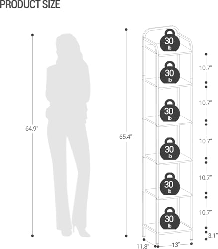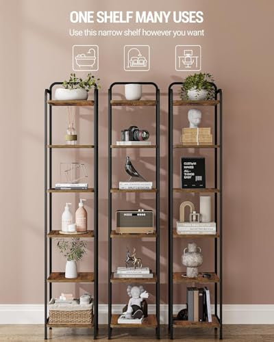Hzuaneri - خزانة كتب BC24601B، رف كتب ضيق من 6 طبقات، منظم تخزين رفوف زاوية صناعي، وحدة رفوف نحيفة للمكتب المنزلي وغرفة المعيشة وغرفة النوم والمطبخ من هزوانيري، لون بني ريفي وأسود
