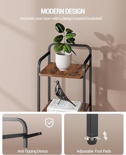 - [تصميم عصري صناعي]: صُمم رف الكتب الأنيق بجزء علوي منحني وإطار معدني. تصميم عصري يظهر ذوقك الراقي والفريد، تمنع الزوايا المنحنية منتجك من السقوط بسهولة، مما يضمن سلامتك وسلامة عائلتك. يتناسق التصميم العصري للرفوف بسلاسة مع غرفة نومك ومكتبك ومدخلك.