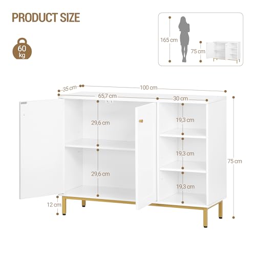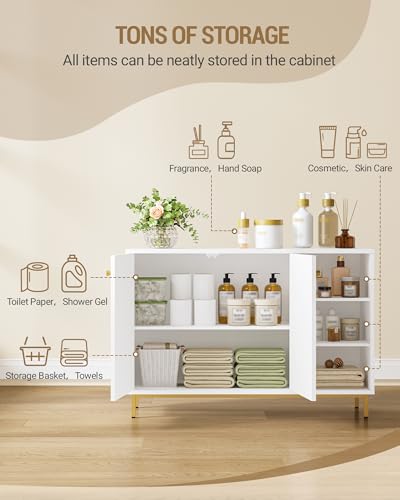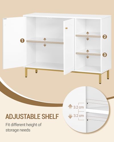 Hzuaneri - خزانة حمام SC10203G من هزوانيري، وحدة فانيتي للمطبخ مع مساحة تخزين مفتوحة، رف تخزين مع بابين، رف قابل للتعديل، ابيض