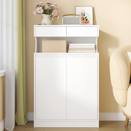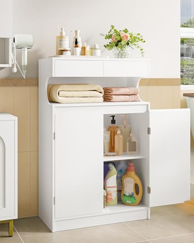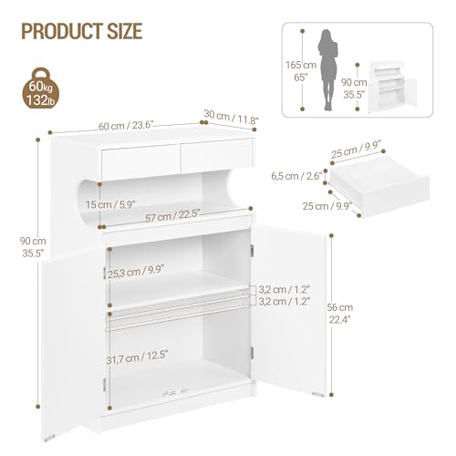 Hzuaneri - خزانة حمام SC63903X من هزوانيري، خزانة تخزين مع درجين وبابين، خزانة مطبخ ذات ادراج ورف قابل للتعديل للحمام وغرفة الرسم مقاس 30 × 60 × 90 سم، ابيض