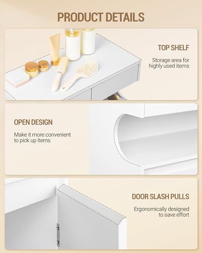 - [أرفف قابلة للتعديل] يمكن تعديل الأرفف الموجودة في باب الخزانة لأعلى وأسفل بمقدار 1.25 انش، مما يجعل مساحة التخزين في خزانة الحمام مرنة وقابلة للتغيير. لذلك يمكنك ضبط الارتفاع حسب حجم منتجاتك، وتلبية احتياجاتك وأيضًا تخصيص العناصر التي لا يمكن تعديل مقاسها