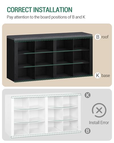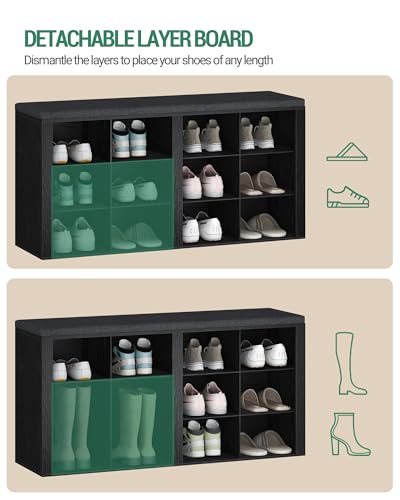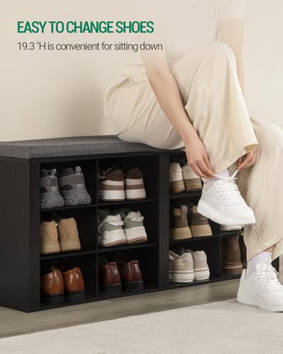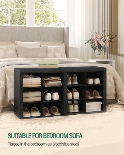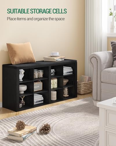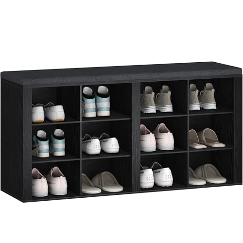 Hzuaneri - مقعد احذية مع وسادة من هزوانيري، مقعد تخزين للمدخل مع 12 مكعب، رف احذية مكعبة مع ارفف قابلة للتعديل، خزانة تنظيم الاحذية لغرفة المعيشة وغرفة النوم والمدخل، اسود SB19004GY