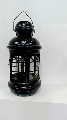Generic - فانوس معدن وزجاجى i طوله 24 سم ومعه شمعه اليكترونيه هديه لونه اسود