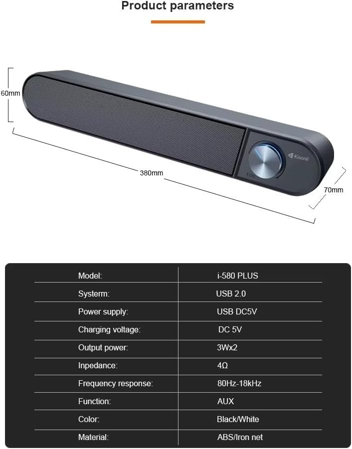 generic - مكبر صوت i-580 2.0 مع اتصال USB صوت قوي وواضح بقوة 6 وات مناسب للألعاب ومحتويات متعددة، تصميم حديث