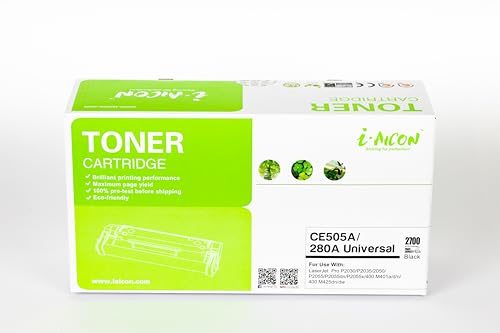 i-Aicon - خرطوشة حبر اتش بي 80A/05A لطابعة ليزر جيت برو P2030/P2035/2050/P2055/P2055DN/P2055X/400 M401A/D/N/400 M425DN/DWI من اي-ايكون، أسود