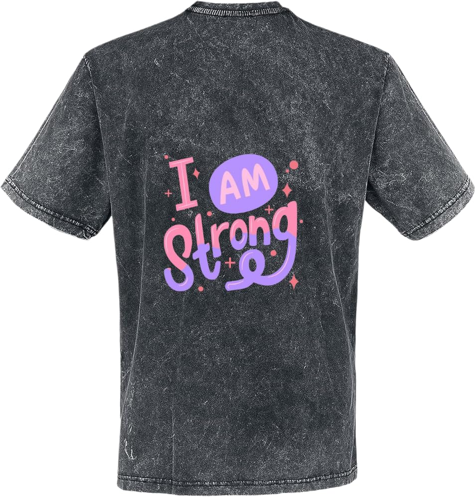 Generic - تي شيرت مطبوع عليه عبارة I AM Strong بظهر مغسول