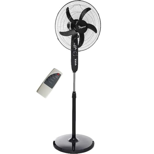 I Home - مروحة ستاند فورس مع جهاز تحكم عن بعد من اي هوم، 5 ريش، 3 سرعات، مقاس 46 سم، لون أسود