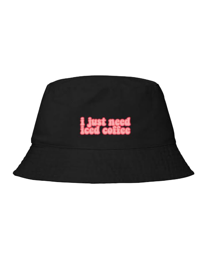 Generic - قبعة بيسبول للجنسين بلون اسود مطبوع عليها I Just Need Iced Coffee