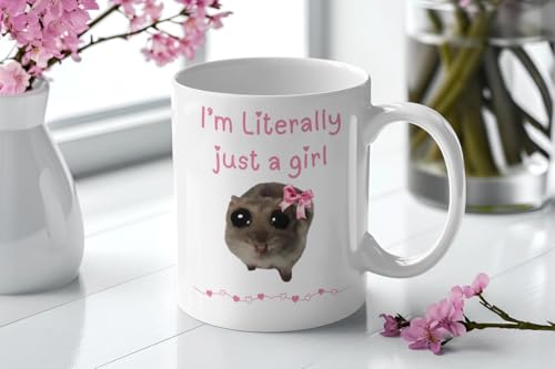 Generic - مج بطبعة عبارة "I'm Literally Just a Girl"، كوب بتصميم هامستر حزين وميم منتشر على تطبيق التيك توك