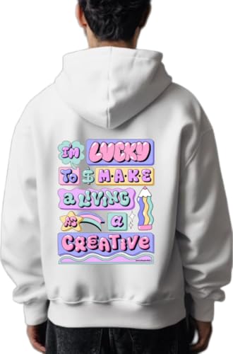Generic - I'm Lucky To Make A Living Creative كنزة ذات قلنسوة أبيض