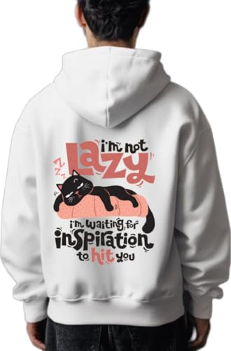Generic - كنزة بقلنسوة بعبارة I'm Not Lazy, I'm Waiting For Inspiration To Hit You باللون الأبيض