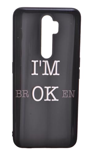 Generic - جراب ظهر بطبعة عبارة I'M Ok من البولي يوريثين الحراري لهاتف أوبو A5 2020، A9 2020 - أسود وأبيض