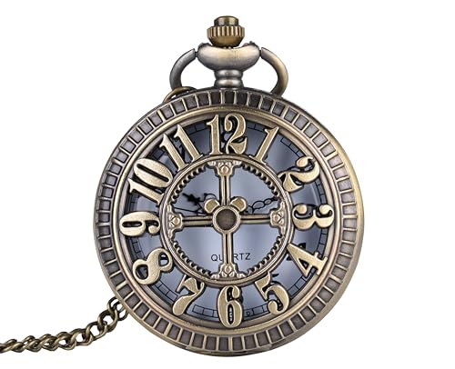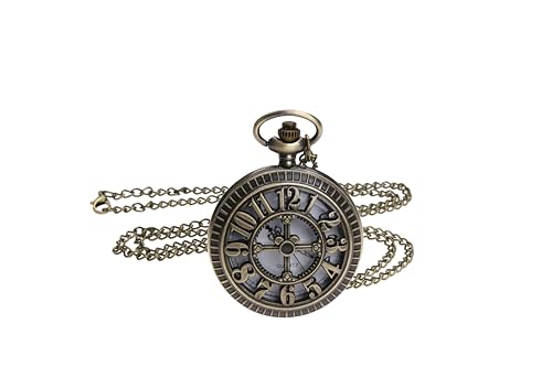 I-MART - اي-مارت ساعة جيب كلاسيكية برونزية عتيقة مع سلسلة بمشبك لوبستر 31 انش قلادة كوارتز ستيمبنك للرجال والنساء