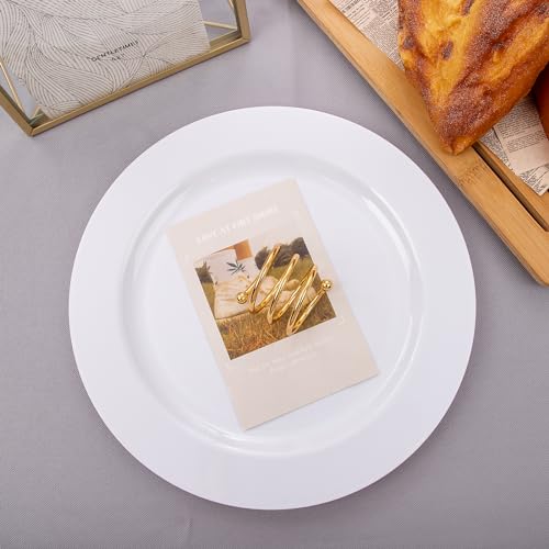 I00000 - 50 قطعة من اطباق العشاء البلاستيكية البيضاء 10.25 انش فاخرة للاستعمال مرة واحدة امنة وقابلة لاعادة الاستخدام رائعة للحفلات او الزفاف اي٠٠٠٠٠