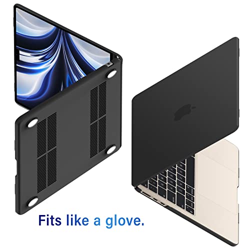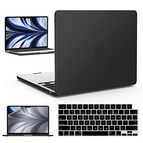 IBENZER - حافظة صلبة متوافقة مع جهاز ماك بوك اير 13 بوصة 2025 2024 2023 2022 M4 A3240 M3 A3113 M2 A2681 من ايبنزر، حافظة صلبة وغطاء لوحة مفاتيح وواقي شاشة لجهاز ماك اير 13.6، أسود، CA-AT13-KK-BK+2