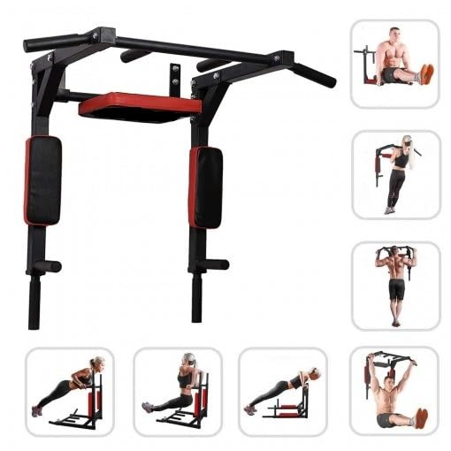 - حامل يُثبت على الحائط ويدعم تمارين متعددة لتمرين شامل للجزء العلوي من الجسم مثل عقلة وضغط.