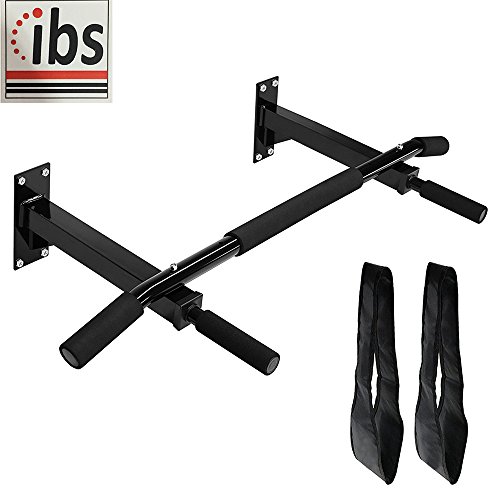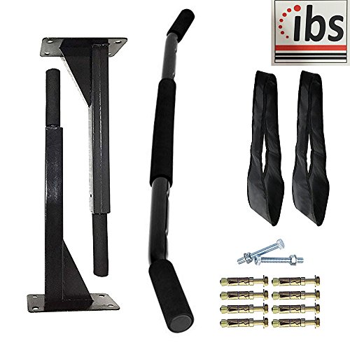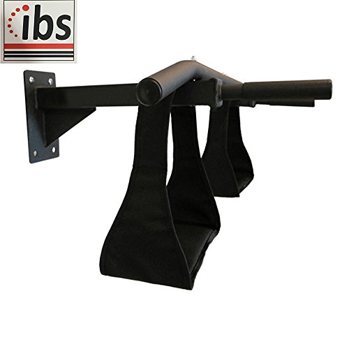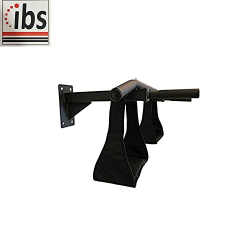 IBS - قضيب تمارين رفع الذقن بتصميم تثبيت على الحائط مع أشرطة عضلات البطن، ملحق متين للاسنخدام في الجيم أو المنزل من اي بي اس (لون أسود)