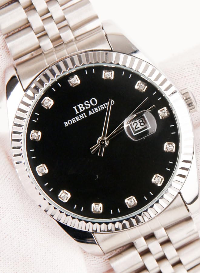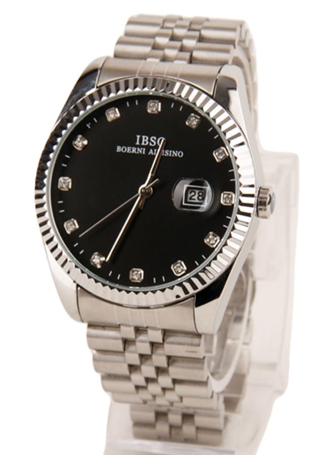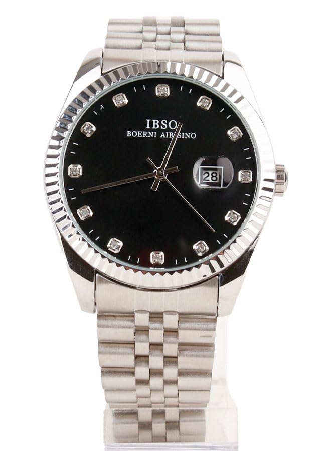 Generic - ايبسو ساعة يد كلاسيك رجالي - انالوج - كورتز - باند استانلس ستيل فضي - مينا سوداء - IBM67