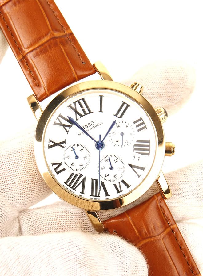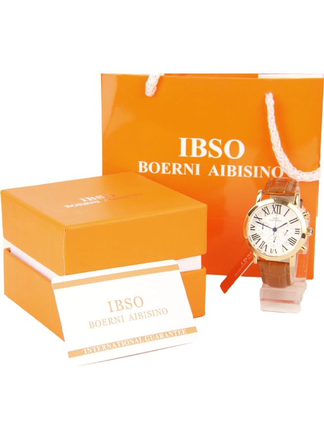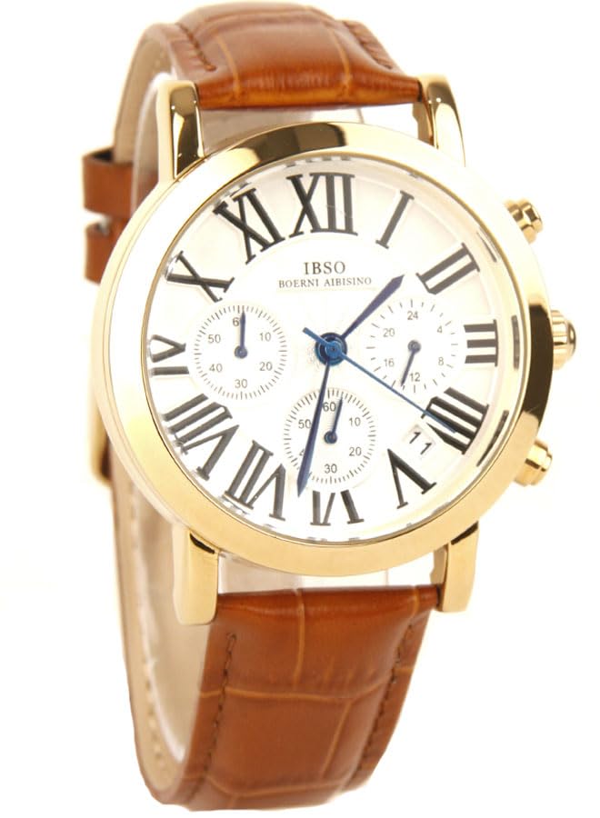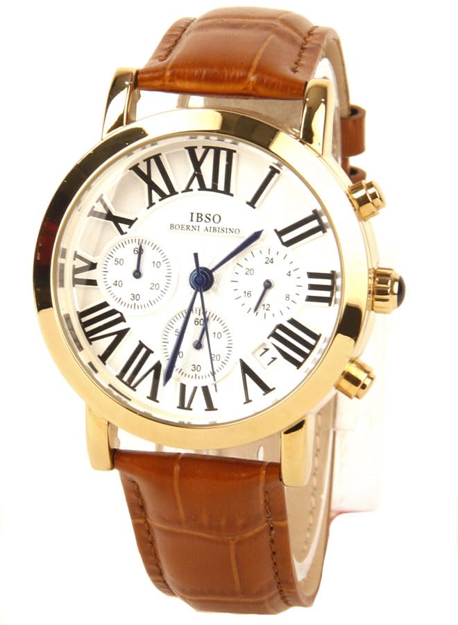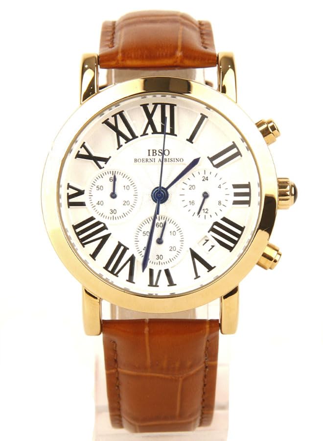Generic - ايبسو ساعة يد كلاسيك رجالي- كرونوغراف - كورتز - جلده هفان - مبنا بيضاء -IBL33