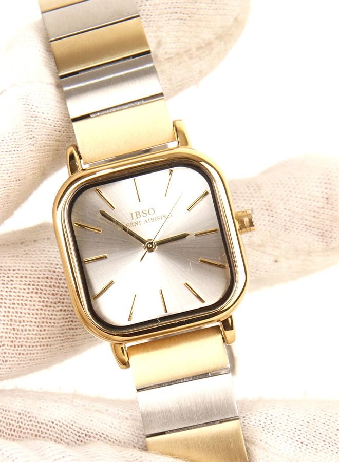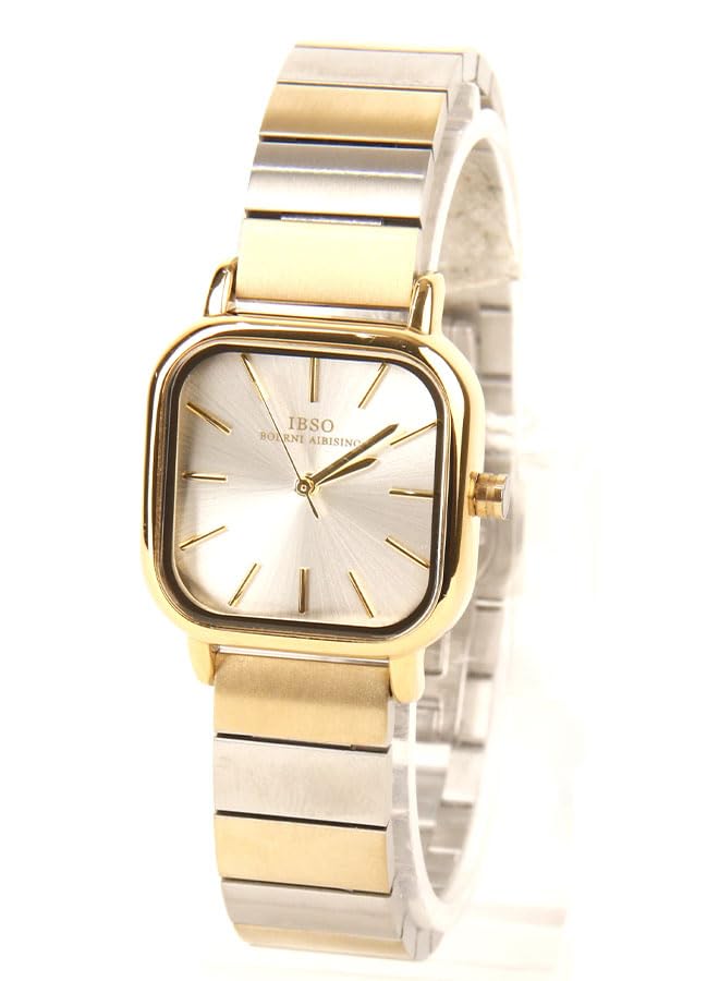 Generic - ايبسو ساعة يد كلاسيك حريمي - انالوج - كورتز - باند استانلس ستيل فضي مطعم بالذهبي - IBM59