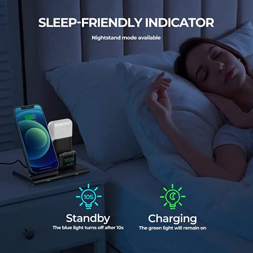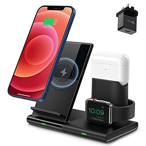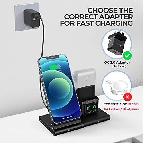 ibsun - اي بي صن شاحن لاسلكي، قاعدة شحن لاسلكية 3 في 1 لساعة ابل، ايربودز برو/2، حامل شحن لاسلكي مغناطيسي قابل للفصل لايفون 13/12/11/سامسونج/هواوي (يتضمن محول كيو سي 3.0).، أحمر