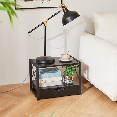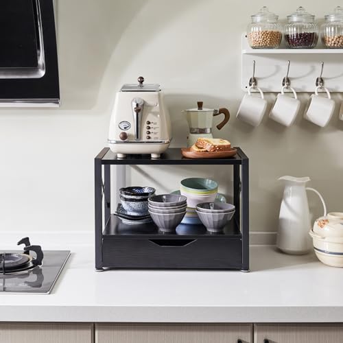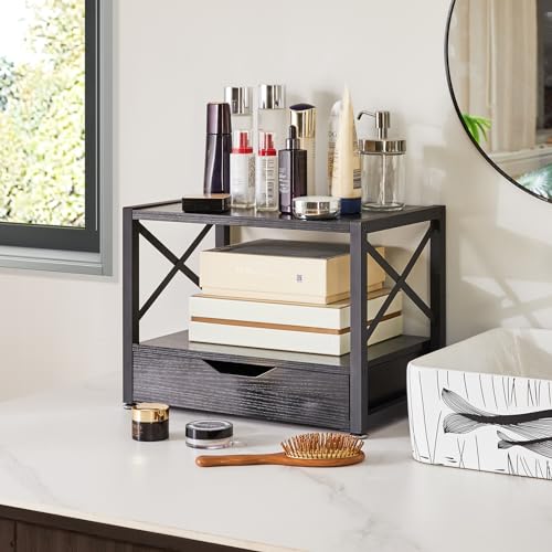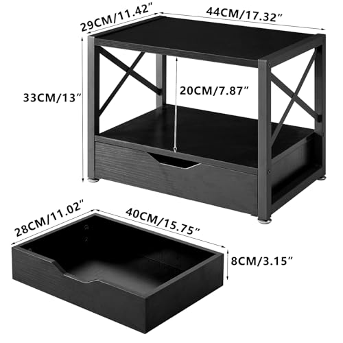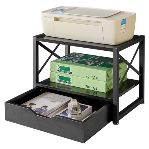 IBUYKE - ايبويك حامل طابعة مكتبي من طبقتين منظم مكتب متعدد الاغراض خشبي مع درج تخزين للمجلدات والكتب وجهاز الفاكس والماسح الضوئي والمكتب المنزلي اسود TLJ006B