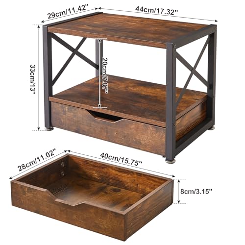 IBUYKE - حامل طابعة مكتبي من طبقتين ايبويك منظم مكتب متعدد الأغراض خشبي مع درج تخزين للمجلدات والكتب وجهاز الفاكس والماسح الضوئي والمكتب المنزلي بلون بني ريفي TLJ006H