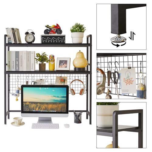 - قم بترقية مكتب الكمبيوتر الخاص بك: صُمم رف الكتب المكتبي هذا خصيصًا لمكاتب الكمبيوتر ومكاتب السكن. يمكنك استخدامه كرف على المكتب. يمكنك بسهولة وضع شاشة الكمبيوتر واستخدام مساحة التخزين العمودية بفعالية وتوسيع نطاق تخزين سطح المكتب. يستوعب بشكل مثالي شاشة كمبيوتر مقاس 32 بوصة للحصول على مكان عمل نظيف وفعال!
