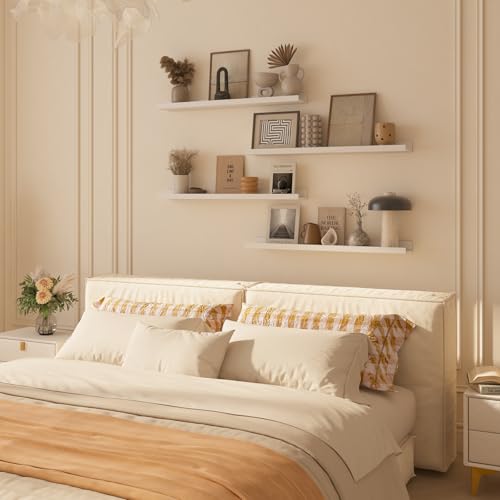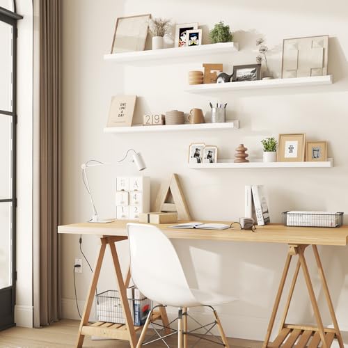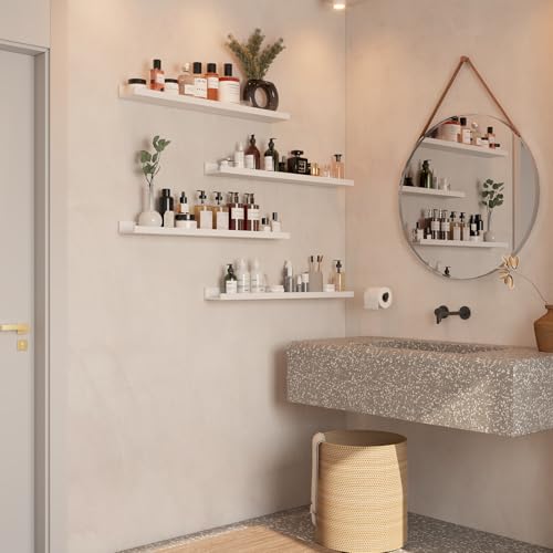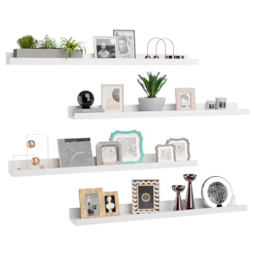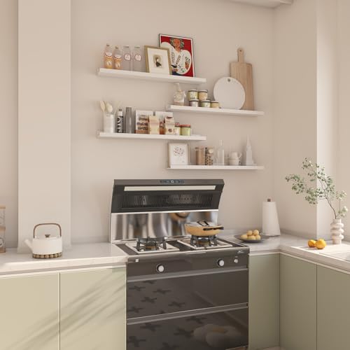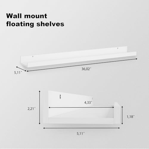 IBUYKE - رفوف خشبية عائمة RF-GB536W-4، رفوف كتب تثبت على الحائط مناسبة للمطبخ وغرفة النوم والحمام من ايبويك، مقاس 91 سم، لون أبيض، مجموعة من 4 قطع