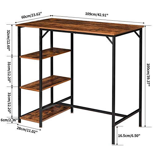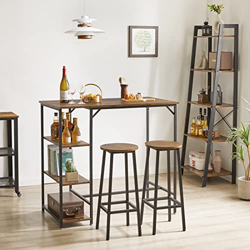 IBUYKE - ترابيزة بار مستطيلة مرتفعة للمطبخ بـ3 ارفف من ايبويك، هيكل حديد ثابت، مقاس 109×60×100 سم، سهلة التجميع، لون بني عتيق، موديل TMJ054H