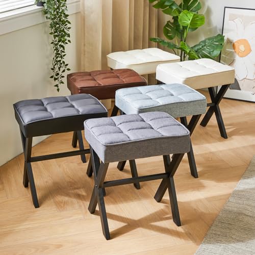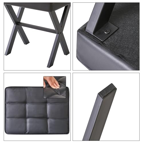 IBUYKE - مقعد مكياج موديل LG-71B بتصميم مربع مع أرجل على شكل حرف X، مسند قدم من الجلد الصناعي متعدد الاستخدامات، طاولة جانبية صغيرة لغرفة النوم وغرفة المعيشة من ايبويك، لون أسود