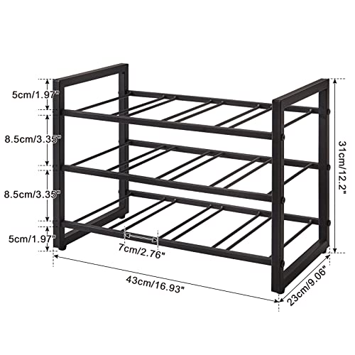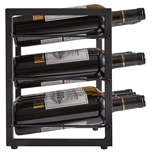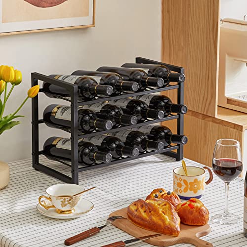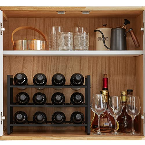 IBUYKE - ايبويك رف تخزين النبيذ، رف تخزين النبيذ قابل للتكديس، حوامل زجاجات الخمور، 3 طبقات لـ 12 زجاجة، حشوات للخزانة، سطح الطاولة، المؤن، البار، مساحة صغيرة، منظم زجاجات المياه من الستيل للدراسة TMJ906H