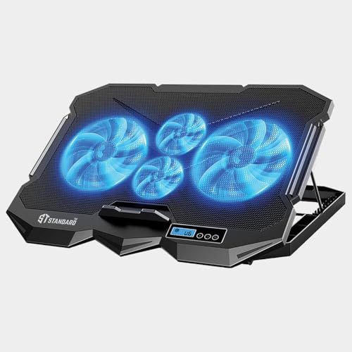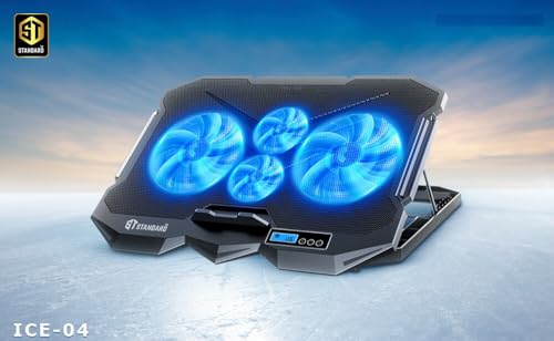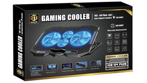 Generic - وسادة تبريد للألعاب ICE-04 بلس - 4 مراوح بإضاءة ليد - تصميم مخصص للألعاب - شاشة LCD وتحكم سريع - أسود | هاي اند