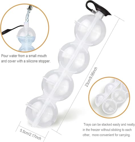 - تصميم متنوع: يتميز قالب كرات الثلج هذا بـ 4 تجاويف دائرية لصنع كرات ثلج كروية مثالية للمشروبات والكوكتيلات.