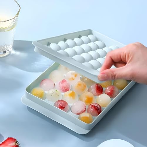 Generic - قالب كرات الثلج - اصنع 33 مكعبًا دائريًا جميلًا من الثلج للكوكتيلات والمزيد باستخدام صانعة الثلج العملية هذه التي تتضمن غطاءً للتجميد والتخزين بسهولة في الفريزر