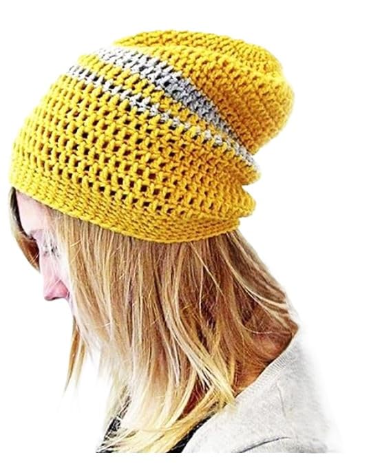 Generic - أيس كاب كروشيه قطنى ناعم للبنات - اللون أضفر زاهى فى رمادى - كاب عصري وتصميم أنيق وراحة لا مثيل لها