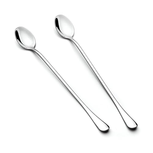 - يتميز هذا الطقم بمعالق بمقبض طويل مقاس 24.13 سم، وهي مصممة خصيصًا لضمان سهولة الوصول إلى الجزء السفلي من أوعية الآيس كريم وأكواب الصودا وأكواب القهوة الطويلة، مما يجعلها مثالية للعديد من المشروبات والحلويات.