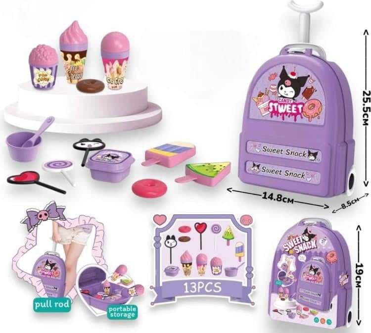 Generic - لعبة مطبخ آيس كريم مع شنطة ترولي للبنات - كرومي