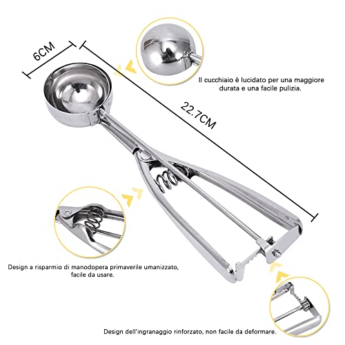 hanaiette - معلقة توزيع ايس كريم كبيرة من الستانلس ستيل بحجم 6 سم، اداة مطبخ مناسبة للبطاطس المهروسة والبسكويت وعجين الكيك والبطيخ