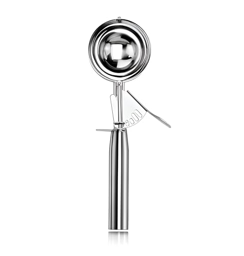 Generic - مغرفة ايس كريم - مغرفة فاخرة من الستانلس ستيل مع شكل ملعقة مريح، رافعة زناد ناعمة، مثالية للايس كريم والجيلاتو والشربات والحلويات السلسة؛ امنة للغسل في غسالة الصحون، متينة، لمسة نهائية فضية