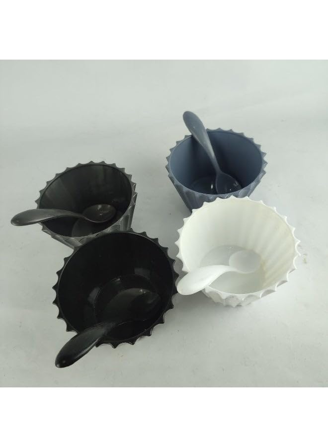 generic - طقم مغرفة ايس كريم مكون من 4 ملاعق مع 4 ملاعق - متعدد الالوان